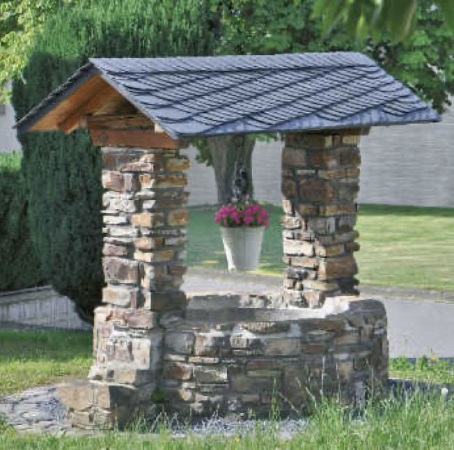 Der Ziehbrunnen in roter Fläche symbolisiert das Grundwort „Born“ des Ortsnamens, der in der Form „Meineburo“ erstmals urkundlich Erwähnung fand.